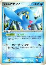 HOME > Pokemon List > Generation IV > List of promos featuring ManaphySearch result: 10No.0490 Manaphy (Japanese: マナフィ) Since the era of Generation IV S-P (2019 - 2022) Manaphy Promo (286/S-P): CoroCoro Ichiban! June 2022 2022, Book, magazine-inserted Unnumbered Captain Pikachu [Jumbo] Promo (Unnumbered): Yokohama Pokemon Center relocation 2008, Jumbo-card DPt-P (2008 - 2009) Manaphy Promo (002/DPt-P): Galactic's Conquest release campaign 2008 PPP (2007) Manaphy Promo (004/PPP): Earn 3000 EXP Points 2007, PLAYERS, Unopened DP-P (2006 - 2009) Manaphy Promo (003/DP-P): Pokemon Diamond & Pearl Battle Festa 2006: Battle Road Stadium DP participation prize 2006 PCG-P (2004 - 2006) Sea's Manaphy Promo (154/PCG-P): All Nippon Airways "Pika Summer Trip" campaign 2006 PCG-P (2004 - 2006) Sea's Manaphy Promo (150/PCG-P): Shogakukan Elementary School magazines Aug-Sep 2006 2006 PCG-P (2004 - 2006) Sea's Manaphy Promo (147/PCG-P): Official Card File 2006 2006, An included accessory, ToysRUs PCG-P (2004 - 2006) Sea's Manaphy Promo (146/PCG-P): Official Deck Case Light 2006 2006, An included accessory, Seven-Eleven PCG-P (2004 - 2006) Sea's Manaphy Promo (139/PCG-P): Meiji Chocolate (June 2006) 2006, Unopened Post Share Pinterest
